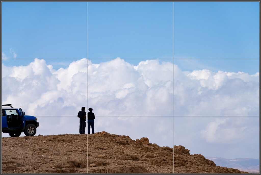 - צילום נוף: קו האופק ממוקם על אחד הקווים האופקיים, ואובייקטים מרכזיים בנקודות המפגש של הקווים.